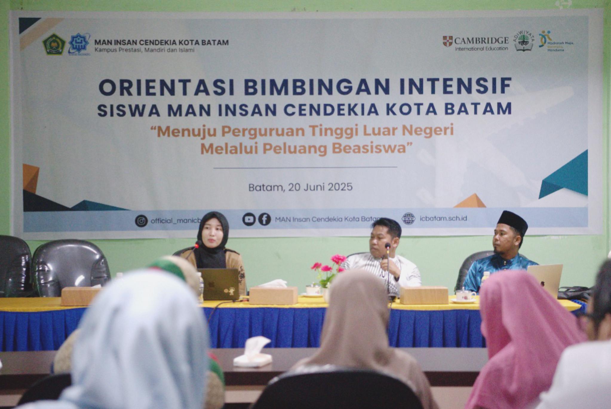 MAN Insan Cendekia Kota Batam menyelenggarakan kegiatan Orientasi Bimbingan Intensif Kuliah ke Luar Negeri melalui Beasiswa pada Jumat, 20 Juni 2025. Acara ini berlangsung secara hybrid di Lantai 2 Gedung Pusat Pembelajaran Terpadu serta melalui Zoom Meeting dihadiri oleh siswa kelas XII beserta orang tua atau wali masing-masing.