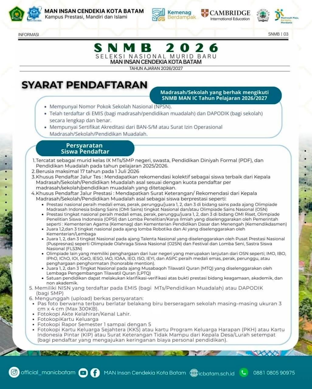 Seleksi Nasional Murid Baru (SNMB) Tahun 2026